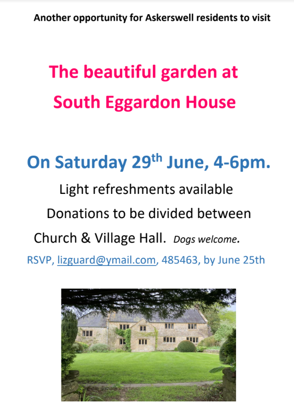 Please mark your diaries with Saturday, June 29th, 4 – 6PM, when Buffy has very kindly agreed to open up her garden for us to enjoy. It’s absolutely beautiful up there and well worth a visit (especially the two thousand year old Yew tree, the underside of which you can see in the picture on the flyer attached.)